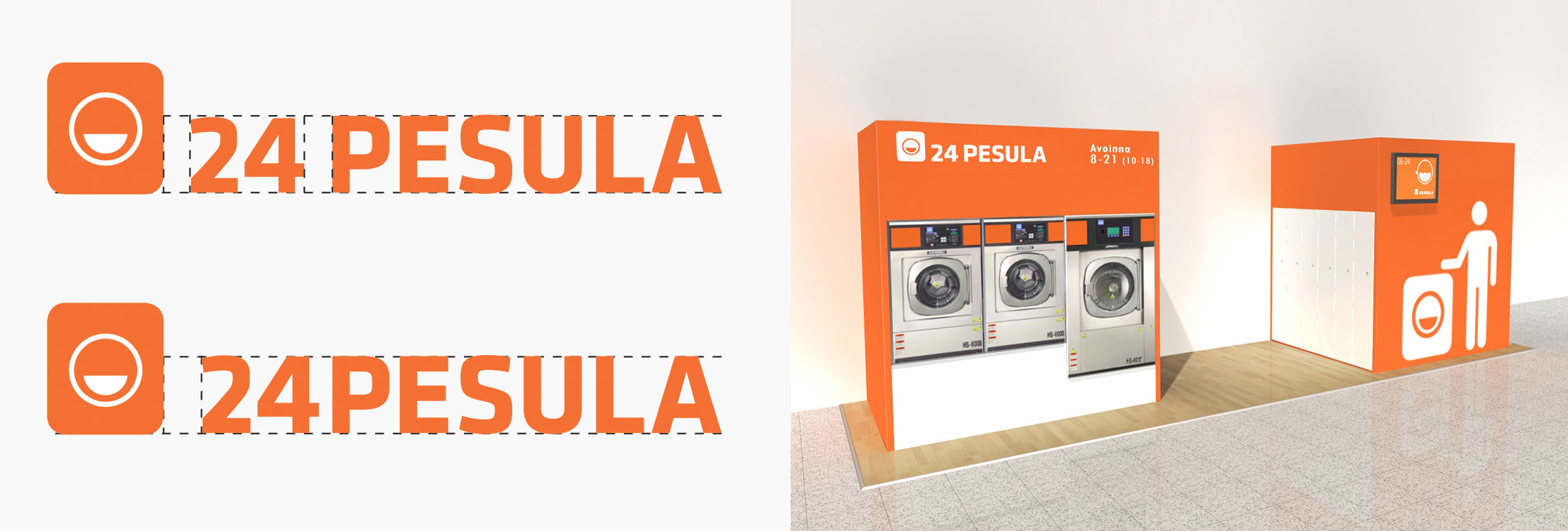 We didn't just design a brand; we designed a business model. We advised a radical shift in location strategy: moving laundries from isolated spots to high-traffic shopping malls. By placing the service where people already spend time, we removed the friction of "going to the laundry." We developed 3D spatial models to ensure the concept was repeatable and efficient, creating a visual identity and interior logic that could be "stamped" onto any new location. This included a new name and a modular graphic system designed for everything from window tapes to neon signs.
